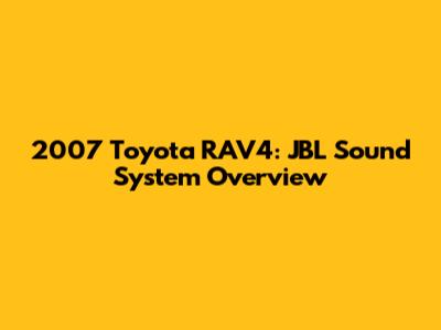 Understanding the 2007 Toyota RAV4 JBL Sound System