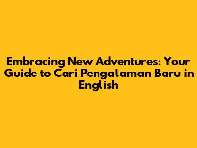 Embracing New Adventures: Your Guide To 'Cari Pengalaman Baru' In English