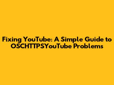 Fixing YouTube: A Simple Guide To OSCHTTPSYouTube Problems