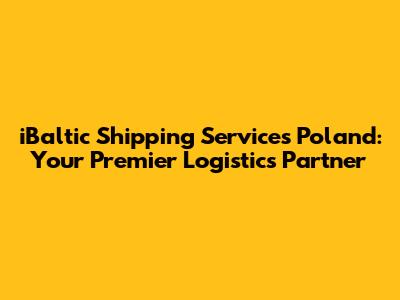 Hey there, fellow logistics enthusiasts! Ever wondered how to navigate the complex world of shipping services in Poland? Look no further, because iBaltic is here to be your trusty guide. We're diving deep into the realm of iBaltic shipping services, specifically focusing on their operations in Poland. If you're looking for reliable and efficient logistics solutions, you've stumbled upon the right place. We'll explore everything from their service offerings to the benefits of choosing iBaltic for your shipping needs. Buckle up, because we're about to embark on a journey through the heart of Polish logistics, with iBaltic leading the way!