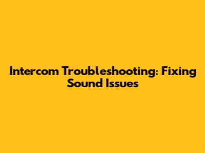 Intercom Troubleshooting: Fixing Sound Issues