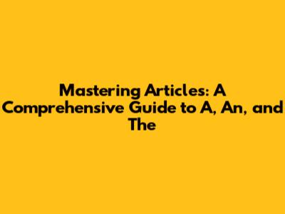 Mastering Articles: A Comprehensive Guide To A, An, And The