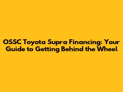 OSSC Toyota Supra Financing: Get Your Dream Car Today!