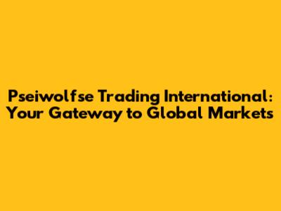 Pseiwolfse Trading International: Your Gateway To Global Markets
