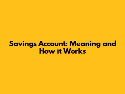 Savings Account: Meaning And How It Works