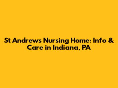 Let's dive into everything you need to know about St Andrews Nursing Home in Indiana, Pennsylvania. Whether you're exploring care options for a loved one or just curious about what this facility offers, we've got you covered. We will explore the crucial aspects of St Andrews Nursing Home, including its location and contact information, the scope of services it provides, payment options, insights into the quality of care based on Medicare data, and a look at its overall ratings and reviews. This information is designed to provide a comprehensive overview, ensuring you have all the details necessary to make informed decisions about care.