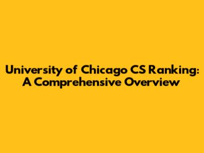 University Of Chicago CS Ranking: A Comprehensive Overview